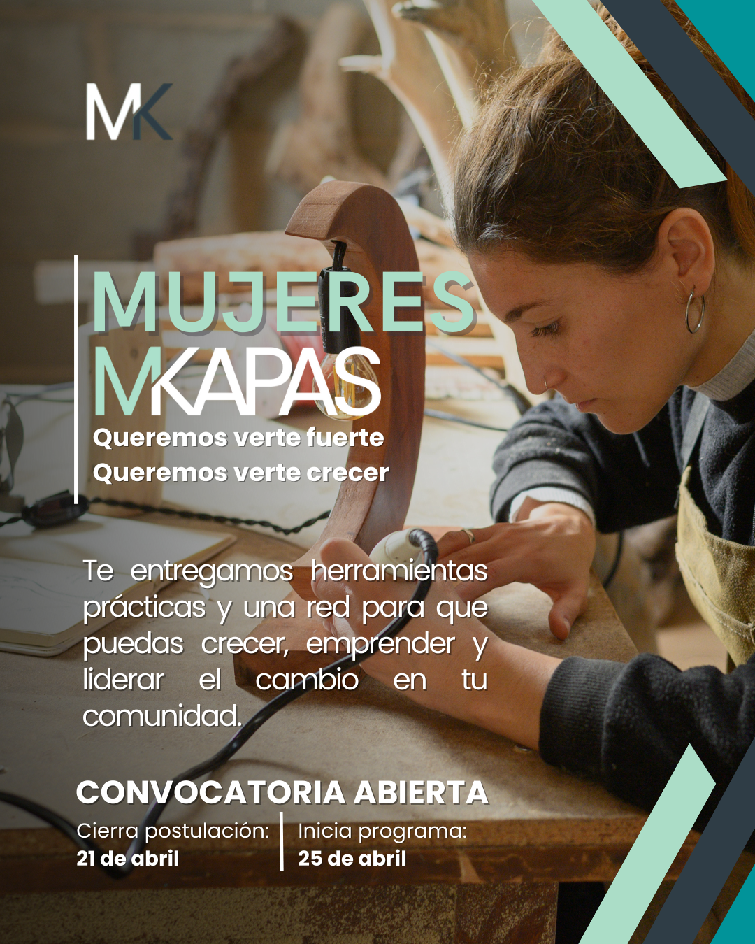 “Existe una deuda pendiente con las mujeres en el país. Nuestro compromiso es trabajar activamente para revertir esta realidad, brindándoles herramientas que hagan la diferencia”, agrega Carolina Pavez, directora ejecutiva de MKapas.